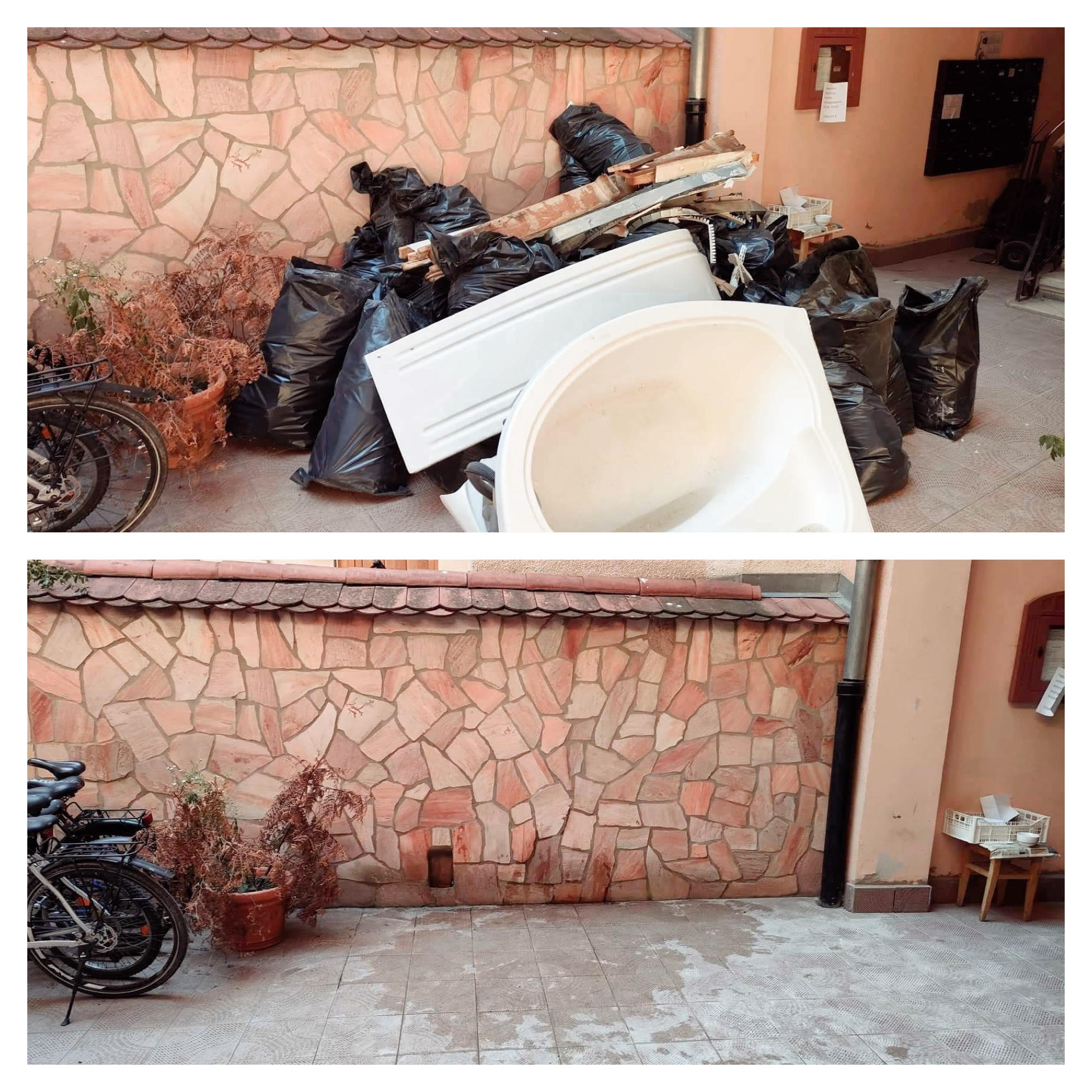 Ön előkészíti a törmeléket építési zsákokba, vagy kérheti, hogy mi végezzük el a szakszerű zsákolást.